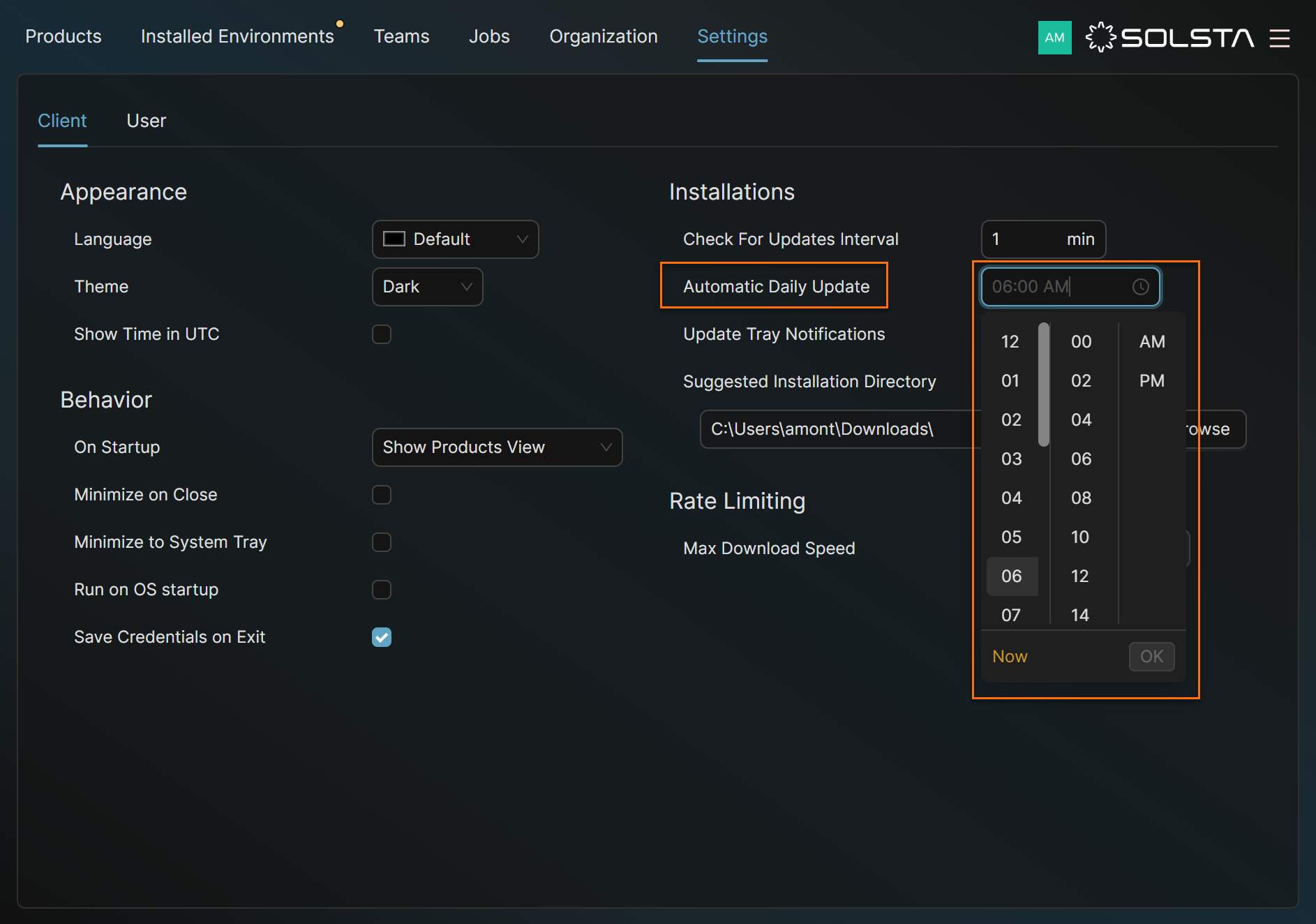 You can set Solsta to automatically update your installed environments every day at a specific time.