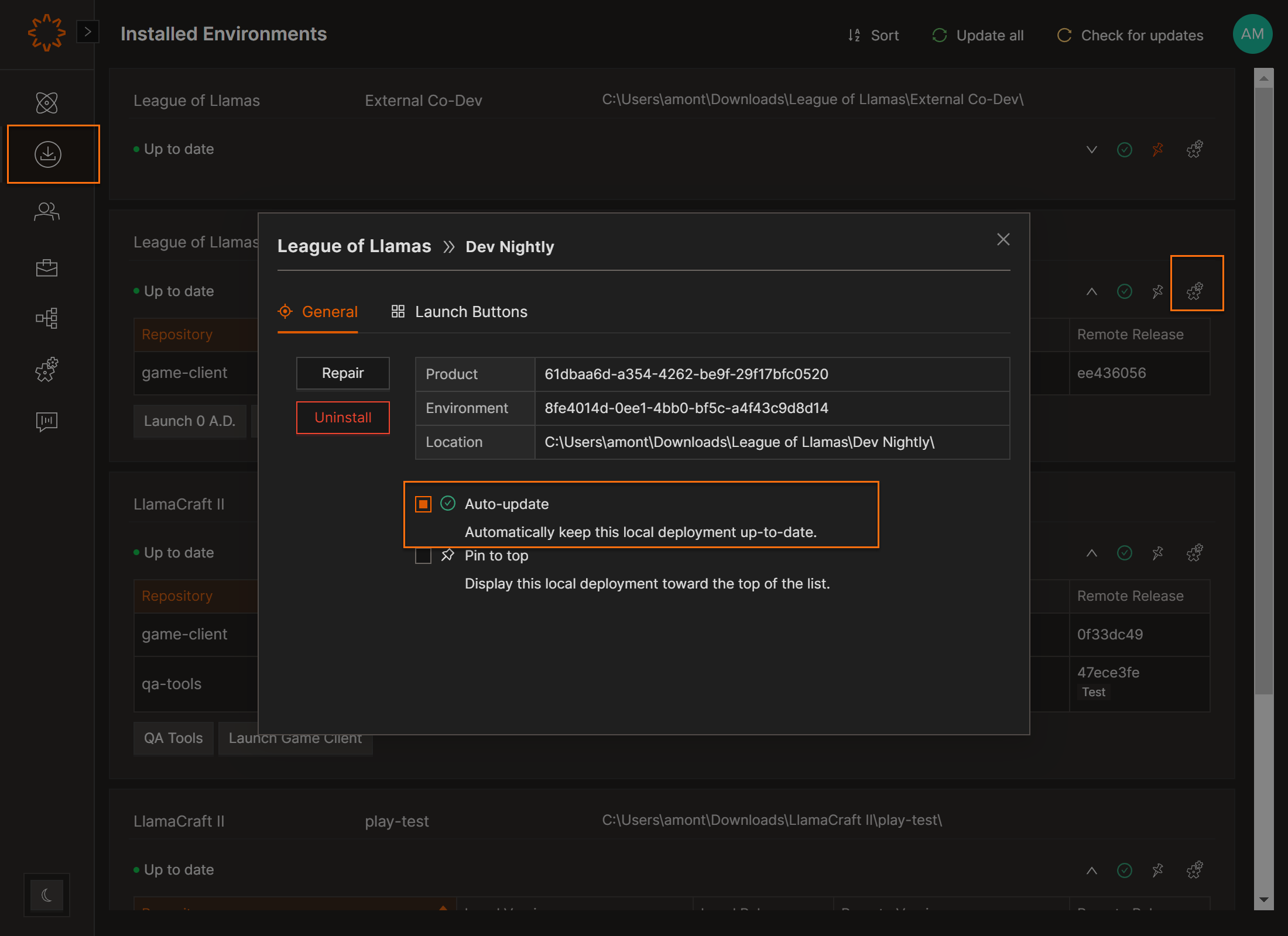 Installed Environments Tab: Automatically Update your Installed Environments: