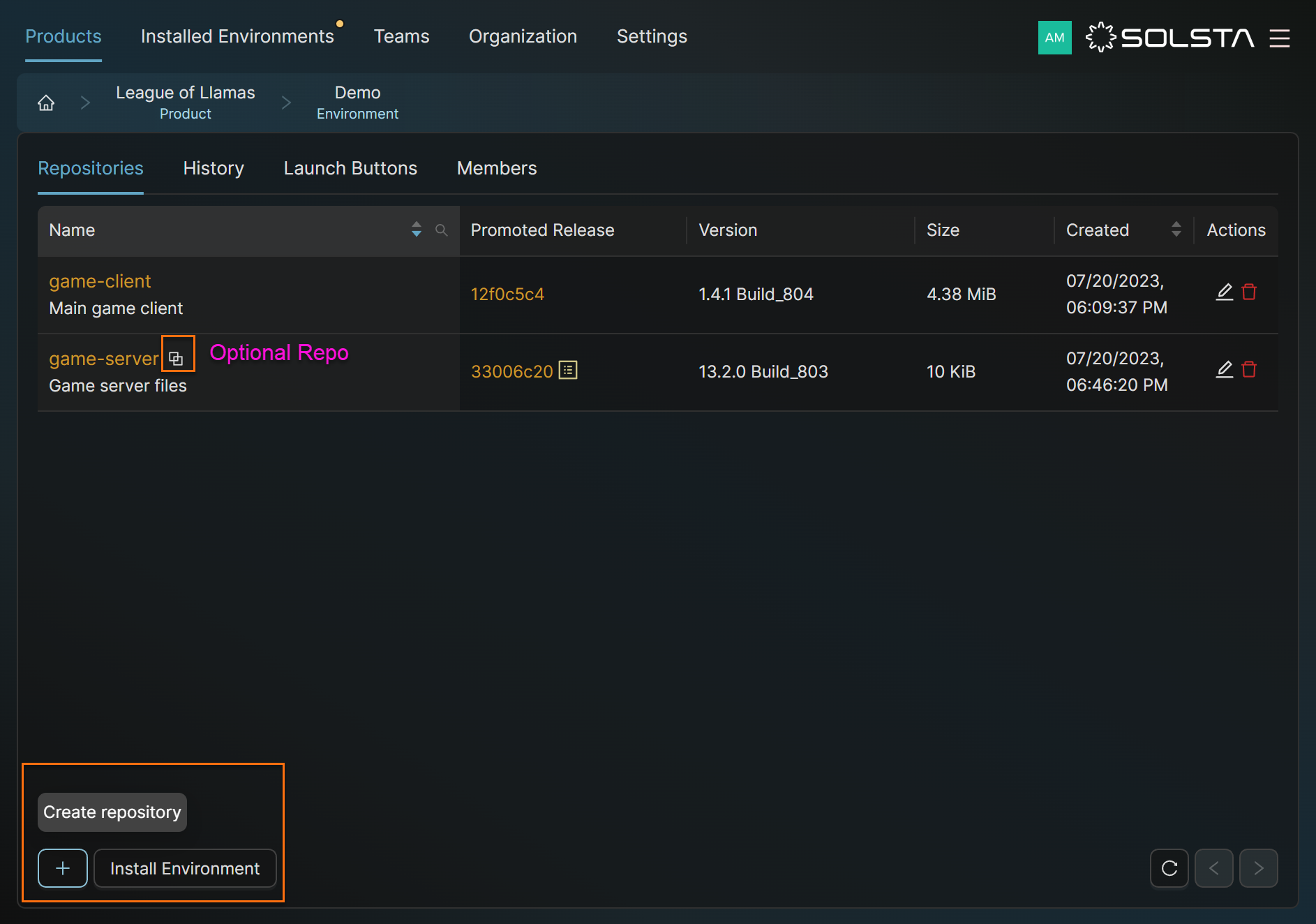 A Repository in Solsta represents a component or subset of an environment’s files — such as a game client, server, or assets pack.