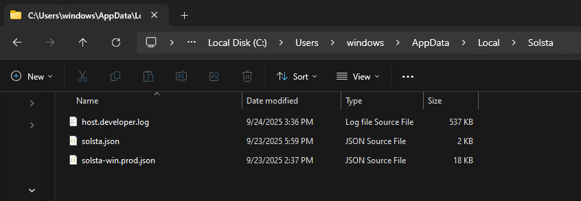 - Navigate to C:\Users\USERNAME\AppData\Local\Solsta