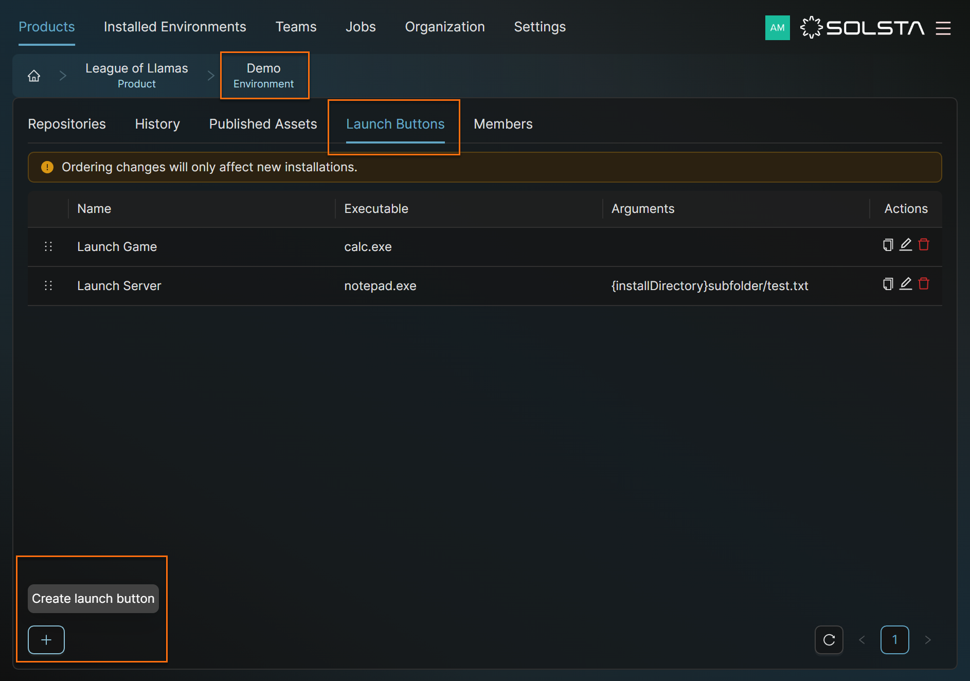 - Navitage to Product -> Select Environment -> Launch Buttons