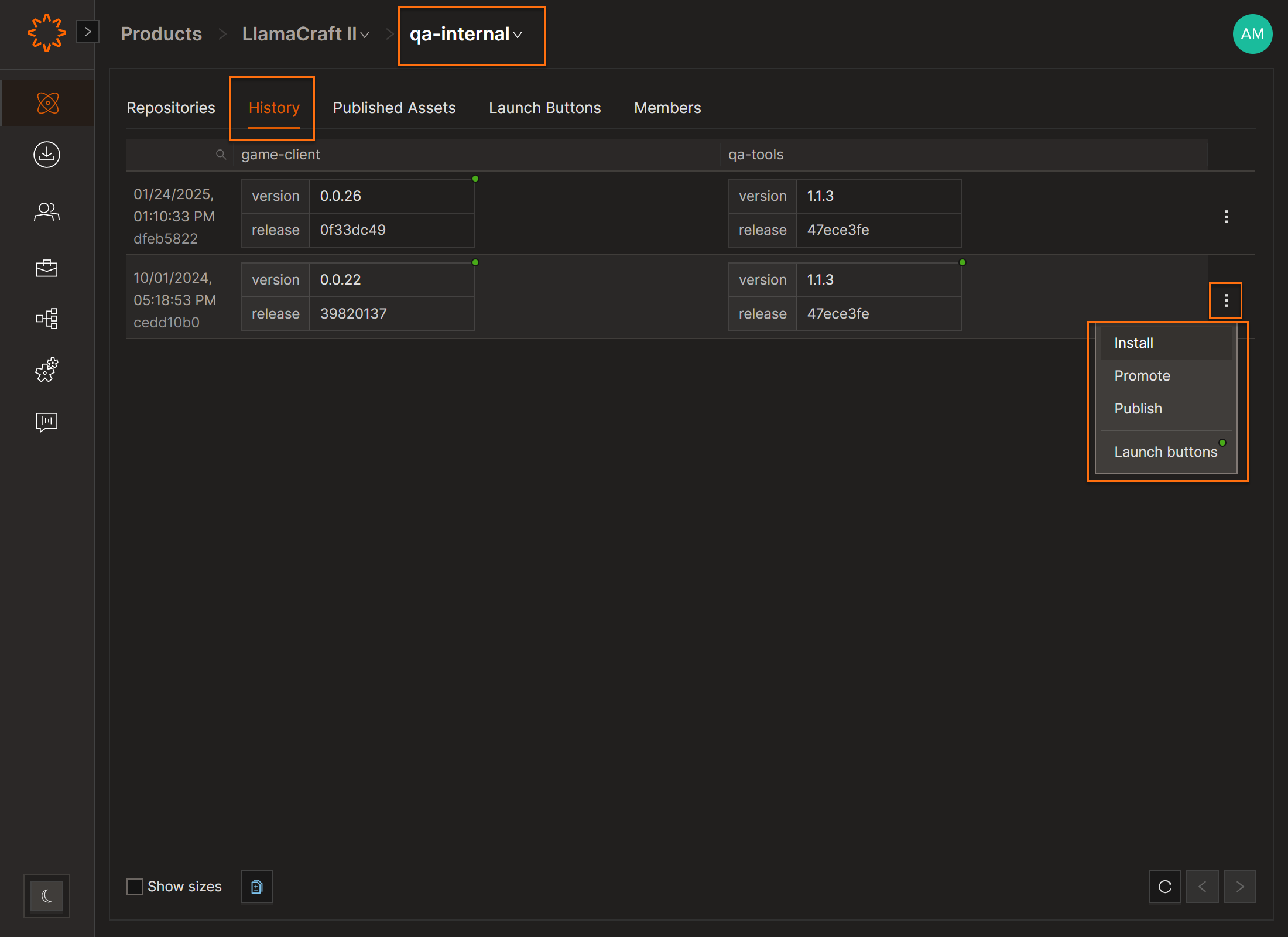 Users can install a specific environment version—including older versions—directly from the Environments screen.
