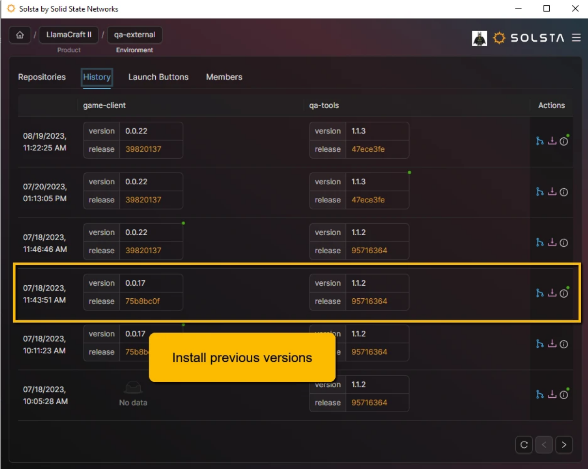 Users can install a specific environment version—including older versions—directly from the Environments screen.