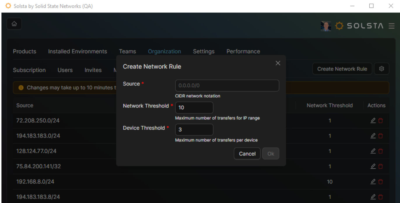 - Solsta clients that have no network threshold rules will not be impacted, however, Organization Administrators can still view all the active downloads in their organization.