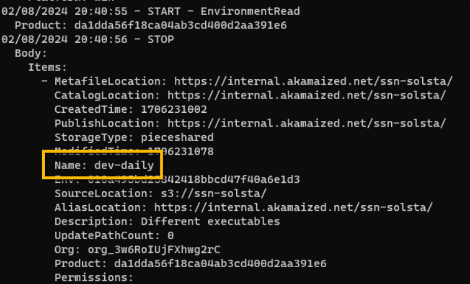 Now that you’ve got a product name, you can use it to get the names of the Environments within that product.
