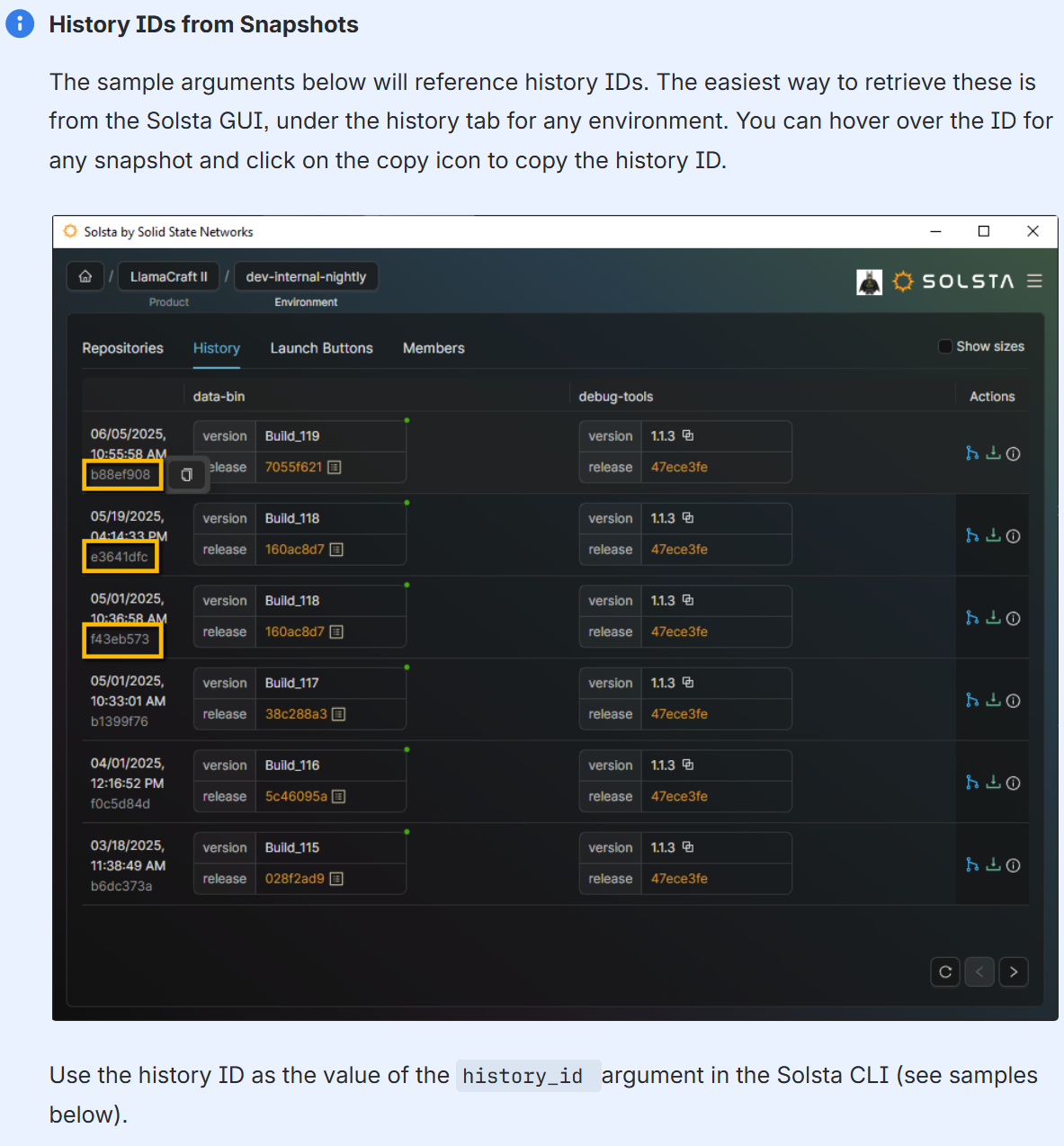 solsta_cli local install --product_name="LlamaCraft" --env_name=dev-daily --history_id=b55b42a6-481d-4c92-b3d6-ad1cb1fc68f8 --location=c:/ssn/solsta/cli/installs/llamacraft/dev-daily/ --debugfileInstall using snapshot as base, plus a specific version
