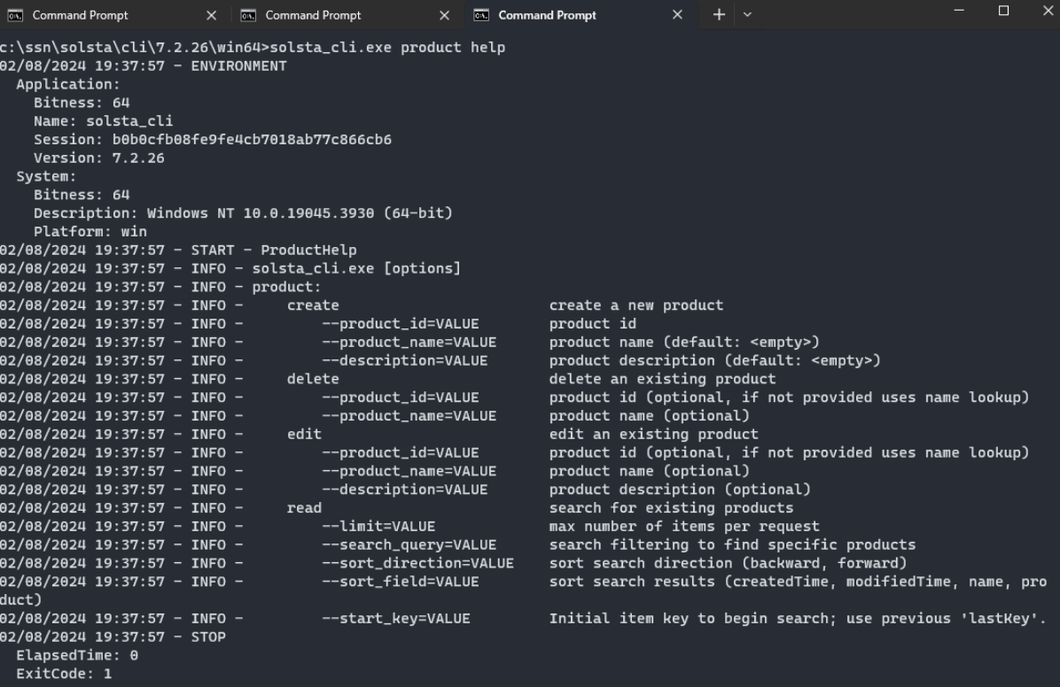 solsta_cli helpsolsta_cli product helpsolsta_cli local help