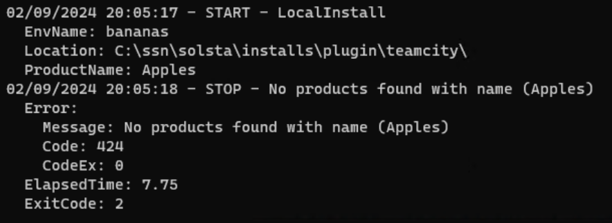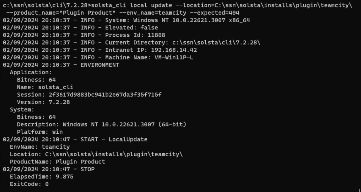 solsta_cli local update --location=C:/ssn/solsta/installs/plugin/teamcity/ --product_name="Plugin Product" --env_name=teamcity --expected=404